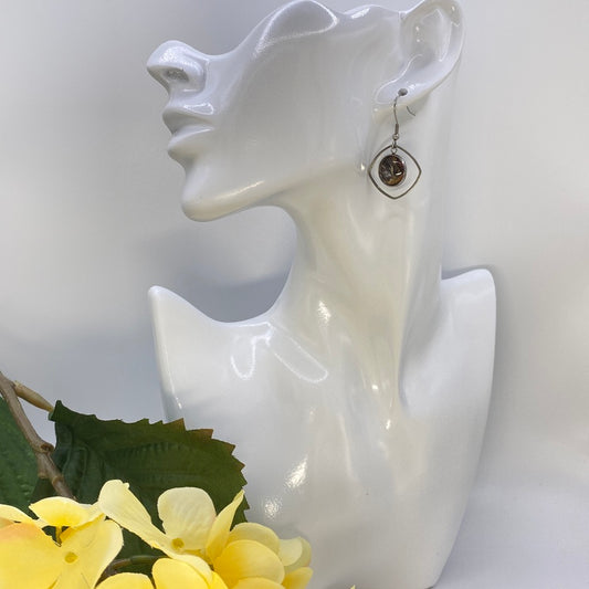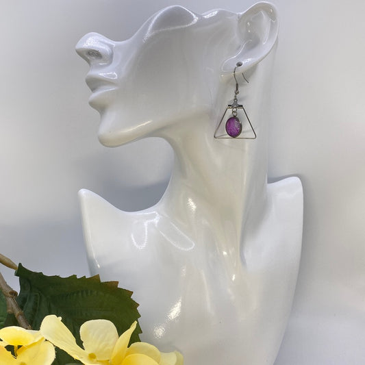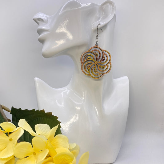 Hand Painted Geometric Cut Out Iridescent Dangle Pendant Earrings