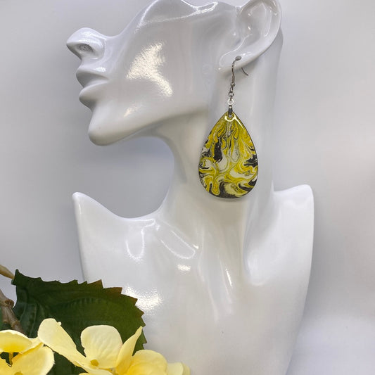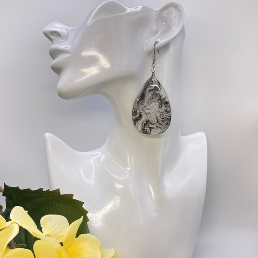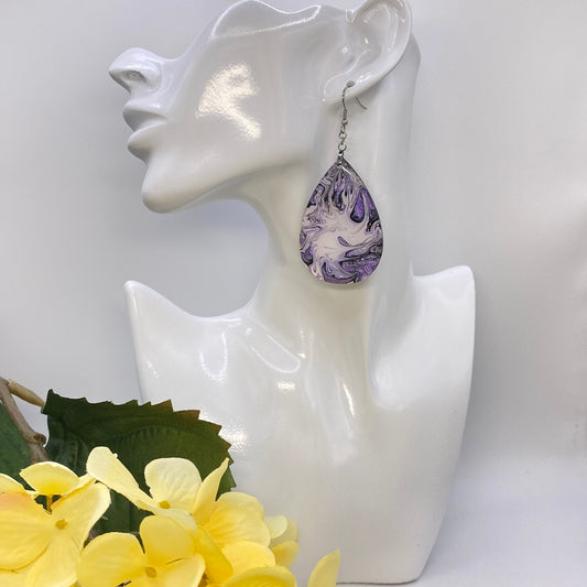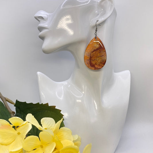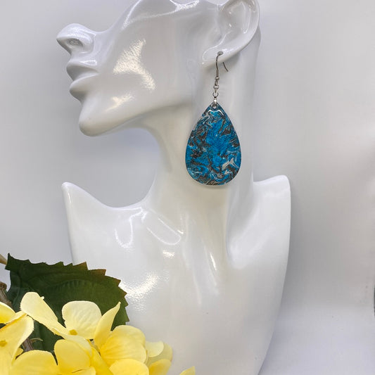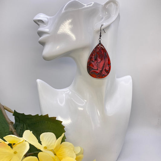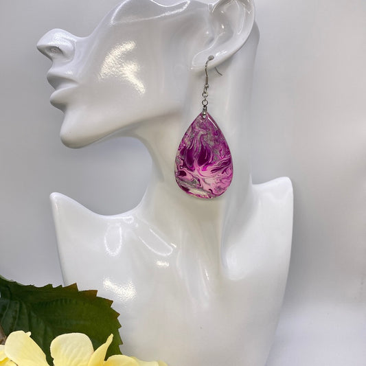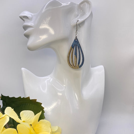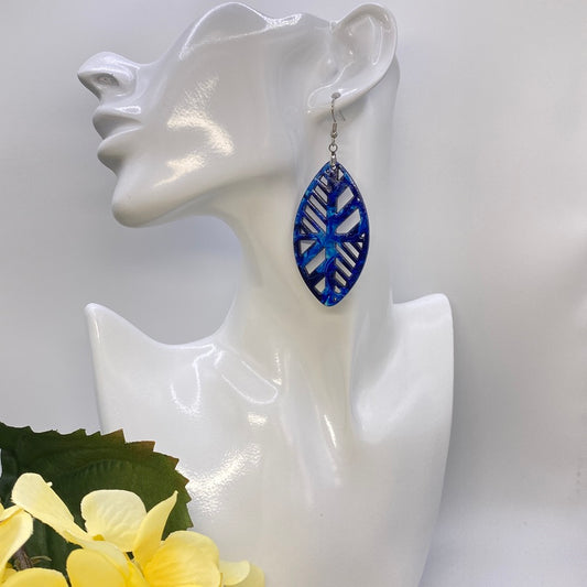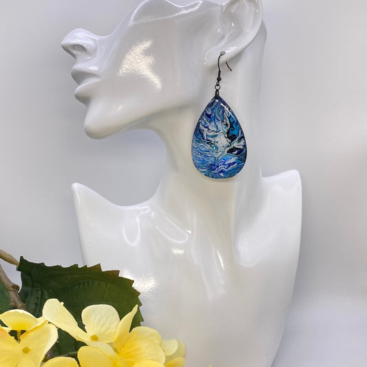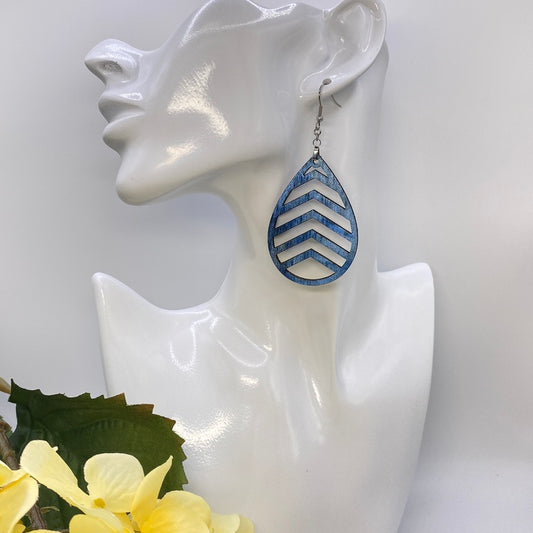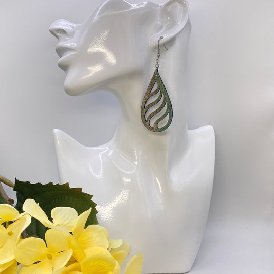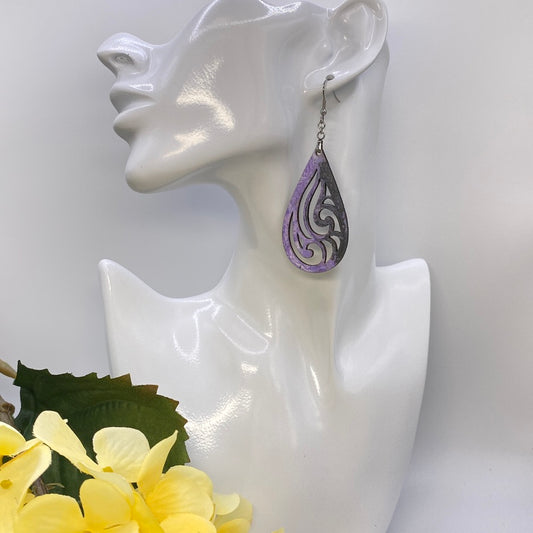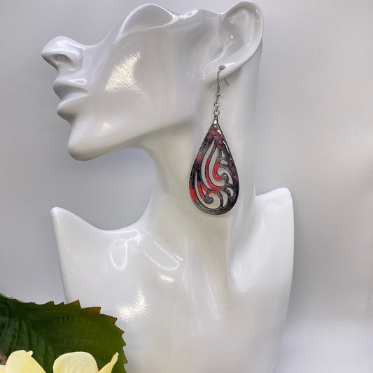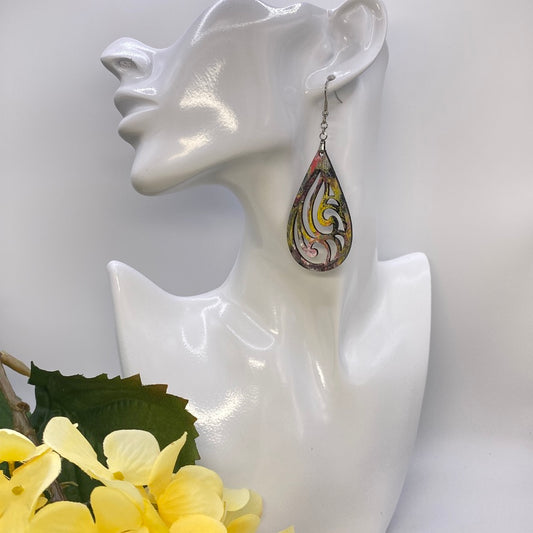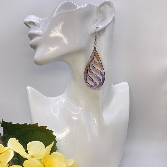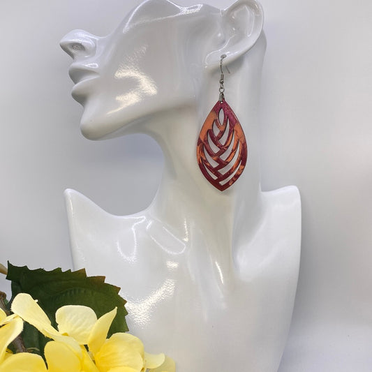 Hand Painted Tear Drop Cut Out Iridescent Dangle Pendant Earrings