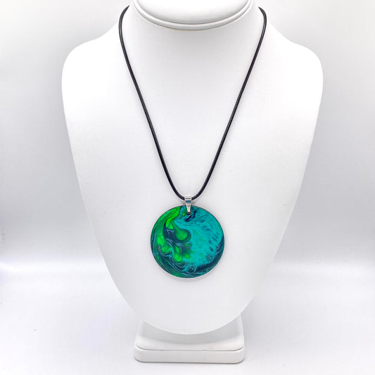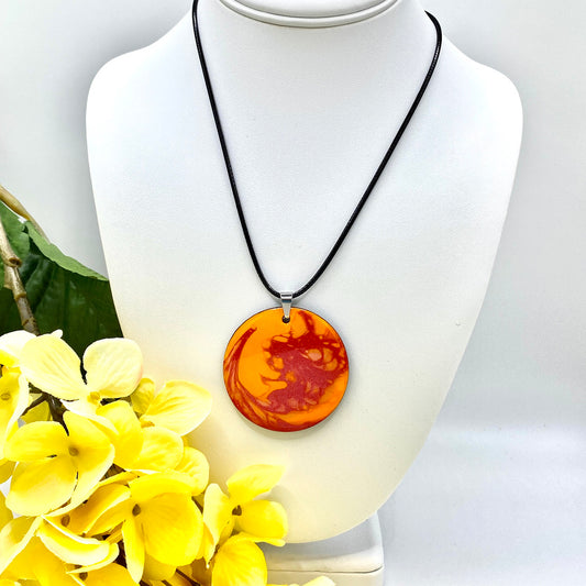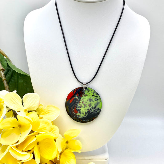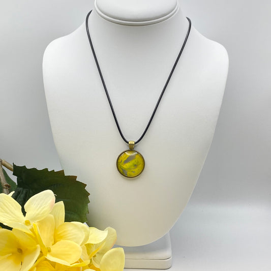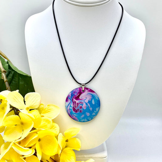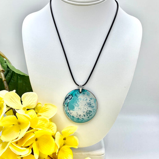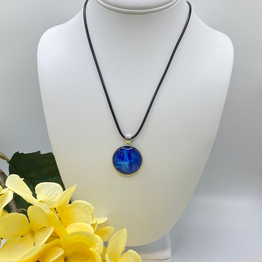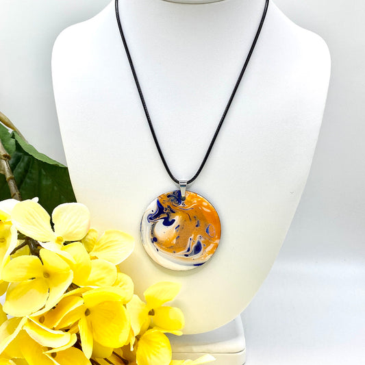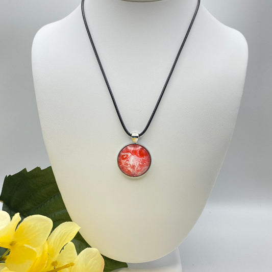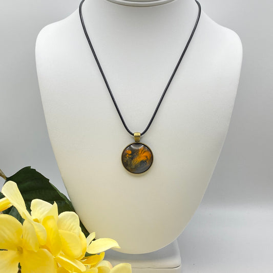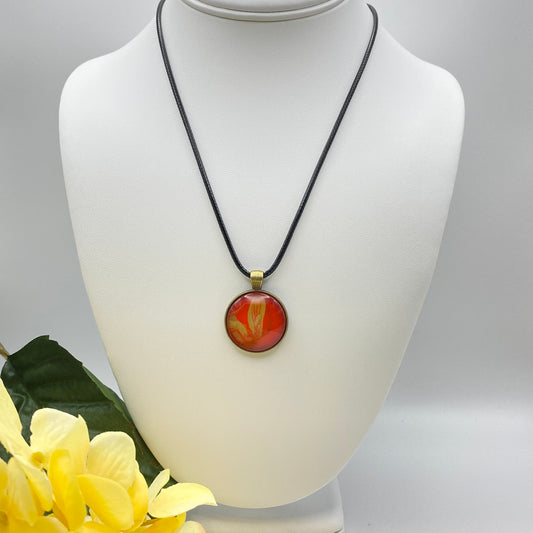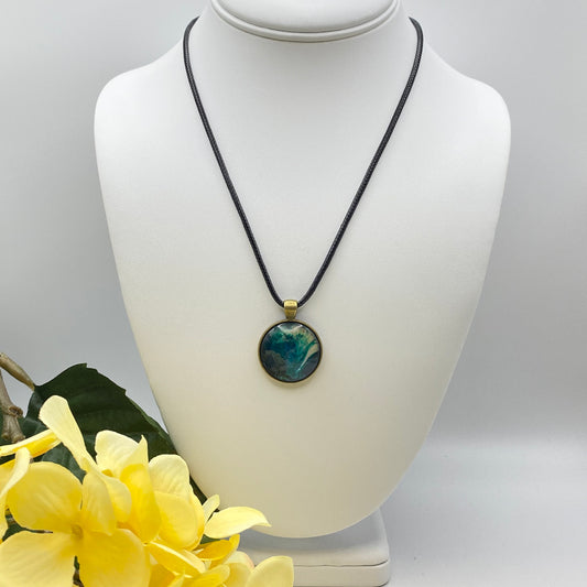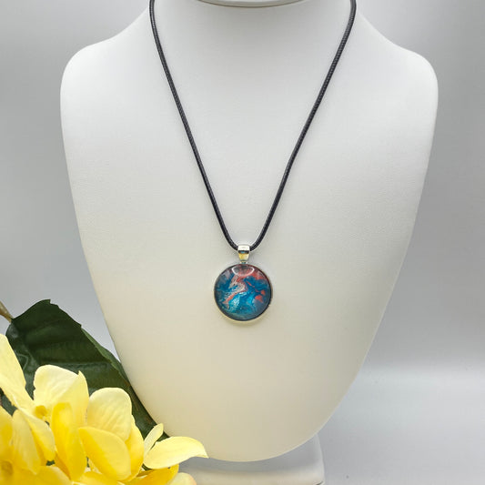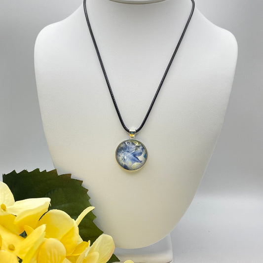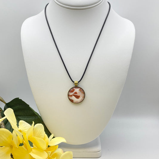 Hand Painted Glass Cabochon Round Bezel Pendant Necklace