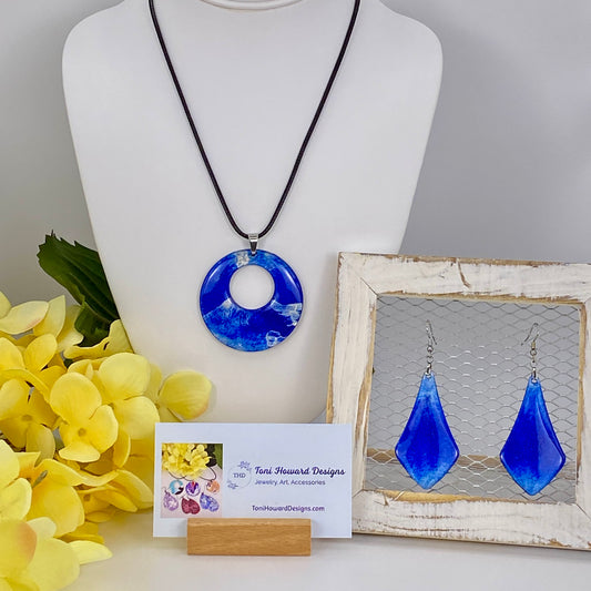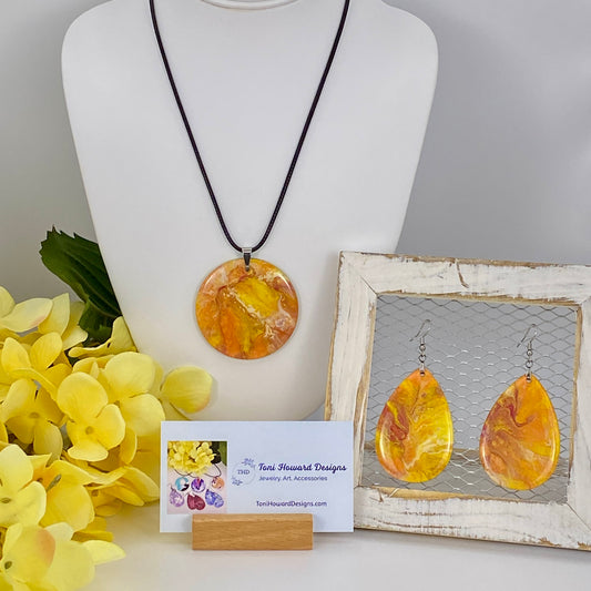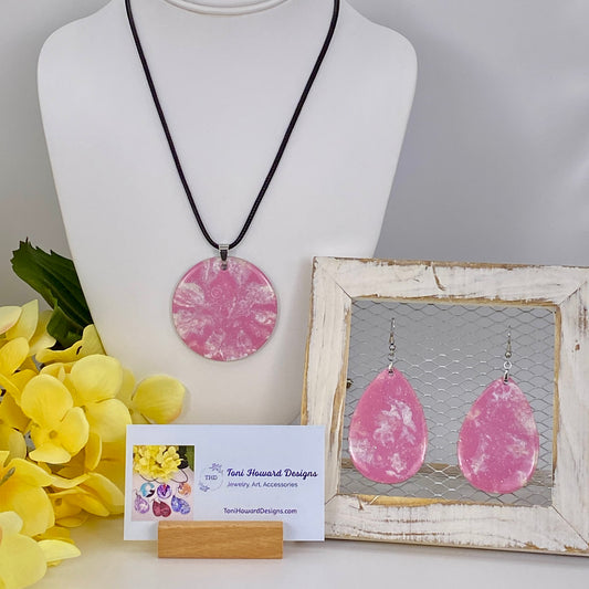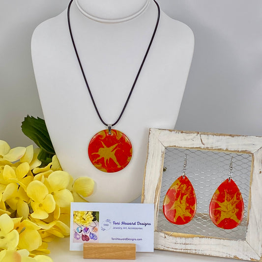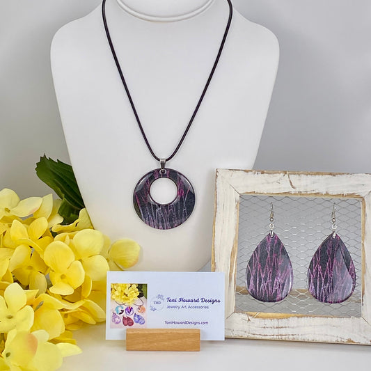 Hand Painted Iridescent Center Hollow Pendant Necklace and Earring Set