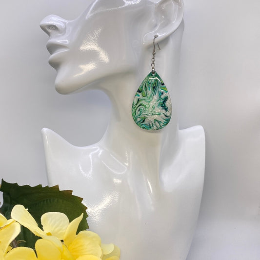 Hand Painted Tear Drop Iridescent Dangle Pendant Earrings