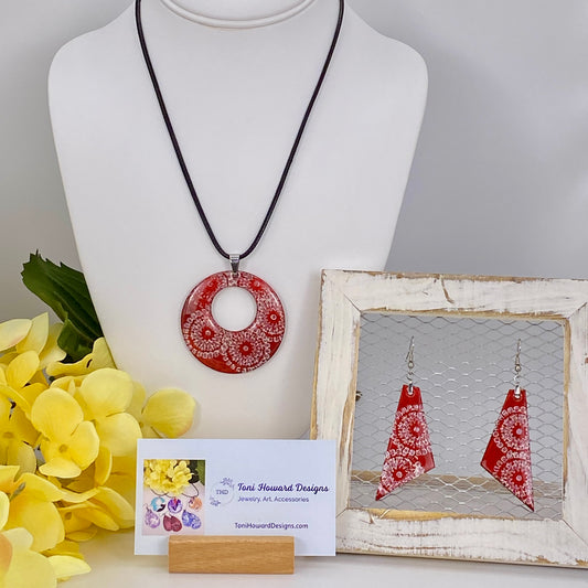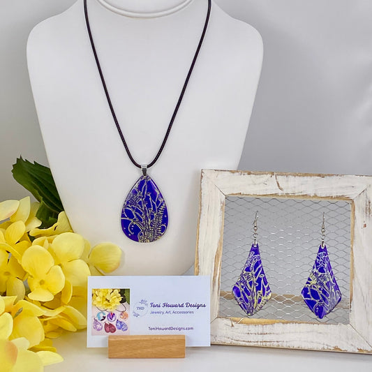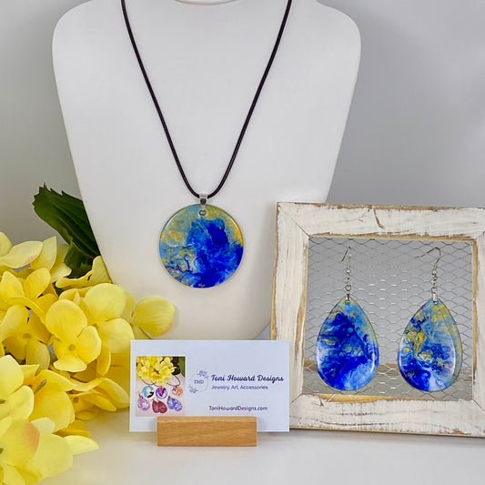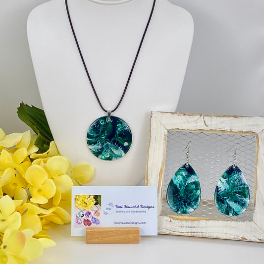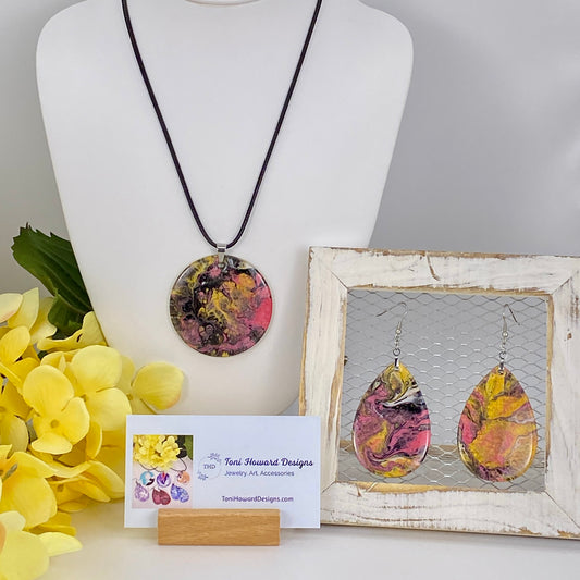 Hand Painted Iridescent Pendant Necklace And Earring Set