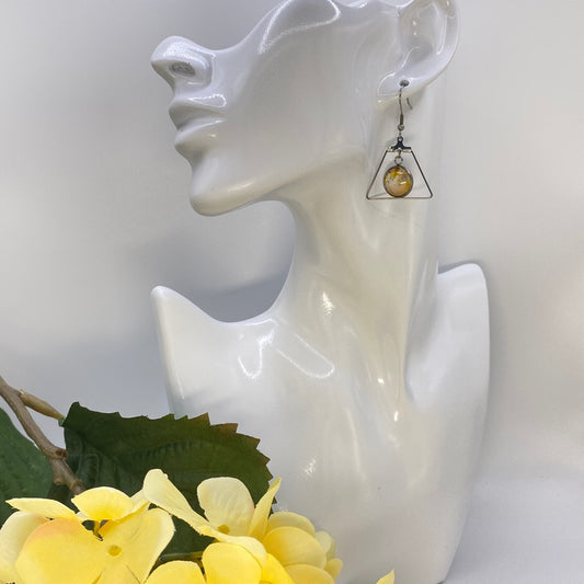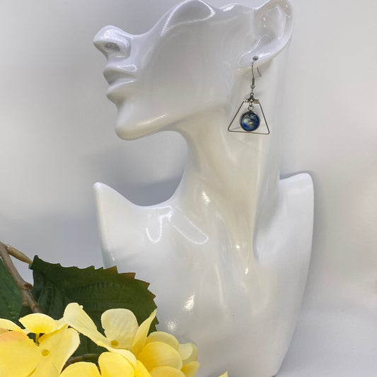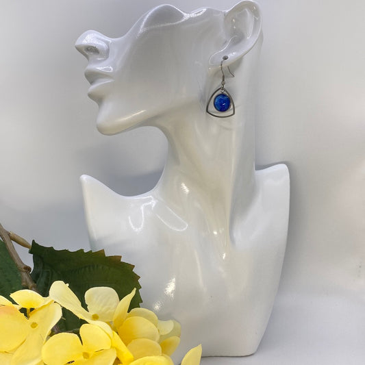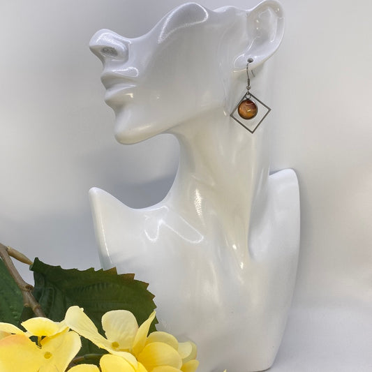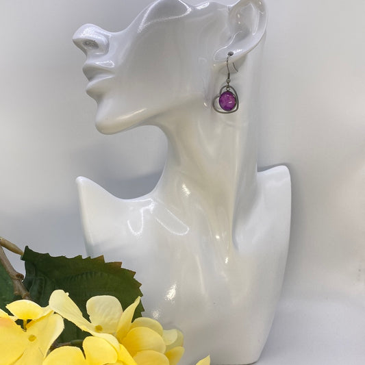 Hand Painted Glass Cabochon Gem Bezel Earrings
