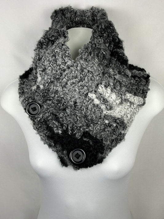 Multi Style Unisex Chunky Crochet Basket Weave Button Cowl Neck Warmer Gaiter Scarf