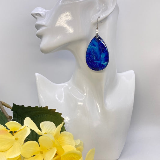 Hand Painted Tear Drop Iridescent Glitter Dangle Pendant Earrings
